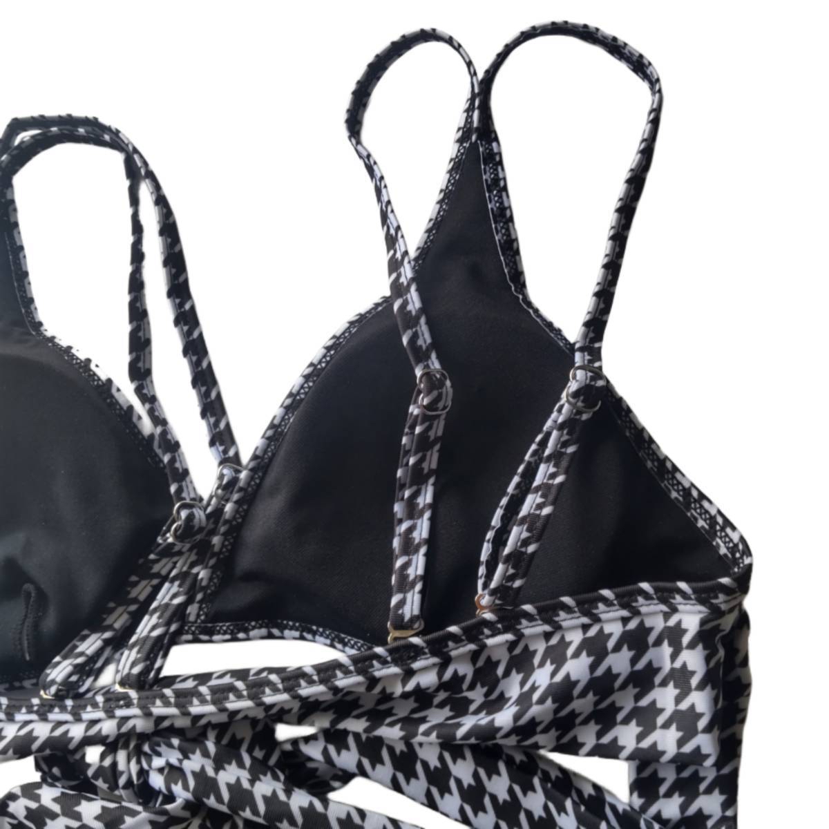 唔好成日着淨色啦~夏天要做啲新嘗試!呢件千鳥格紋嘅Bikini因為有條綁帶綁喺腰間睇落更加顯瘦,後面交叉位同肩帶都有得調節長度,成件都有彈性❣️