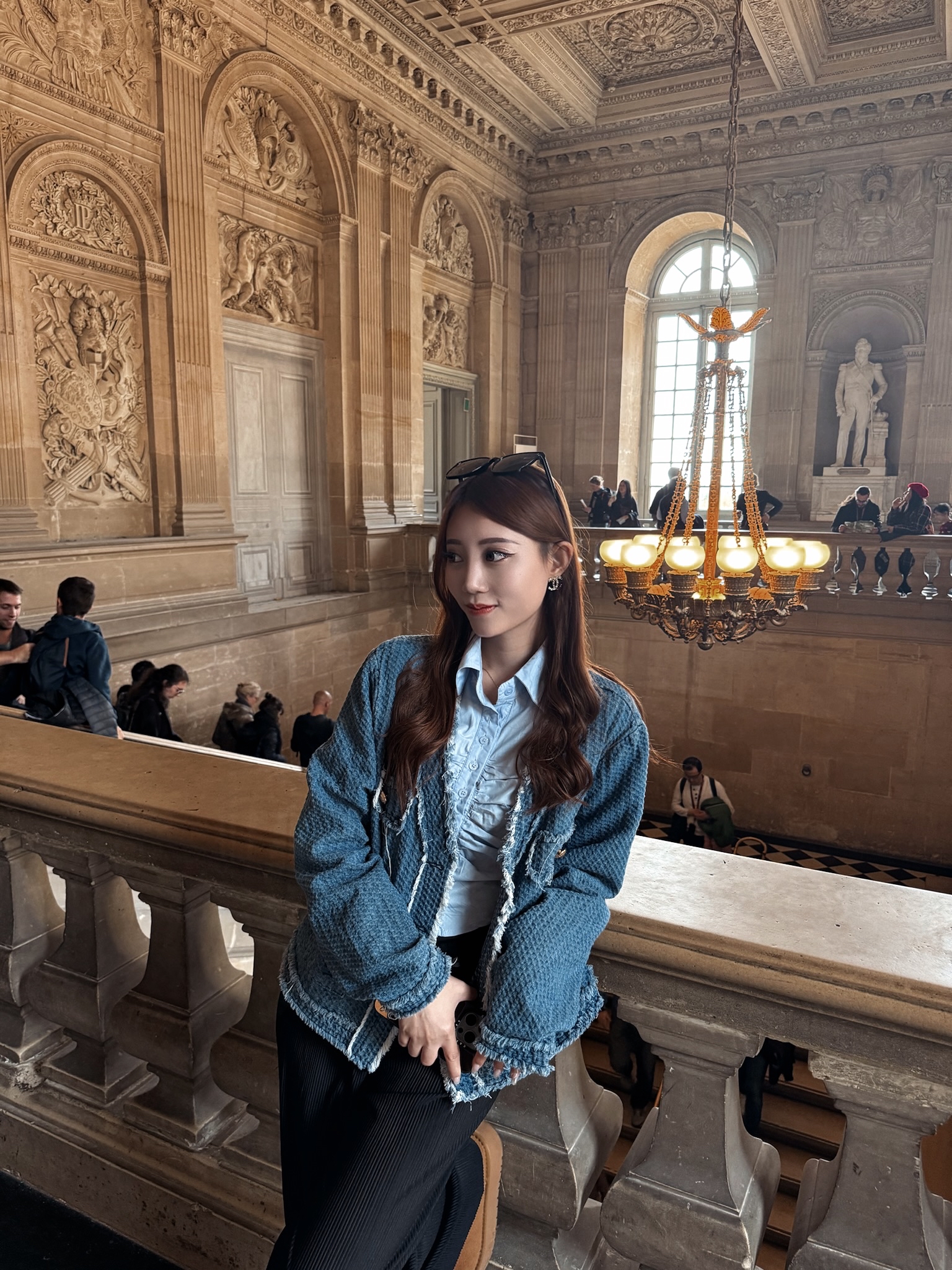 平時黑白色嘅小香風外套大家見得多,呢件帶有少少牛仔feel嘅夠曬特別!grand得嚟夠晒與別不同🫶🏻薄薄地夏天返工或者冷氣地方都啱晒! 衣長57cm 袖長61cm 肩寬47cm 胸圍106cm