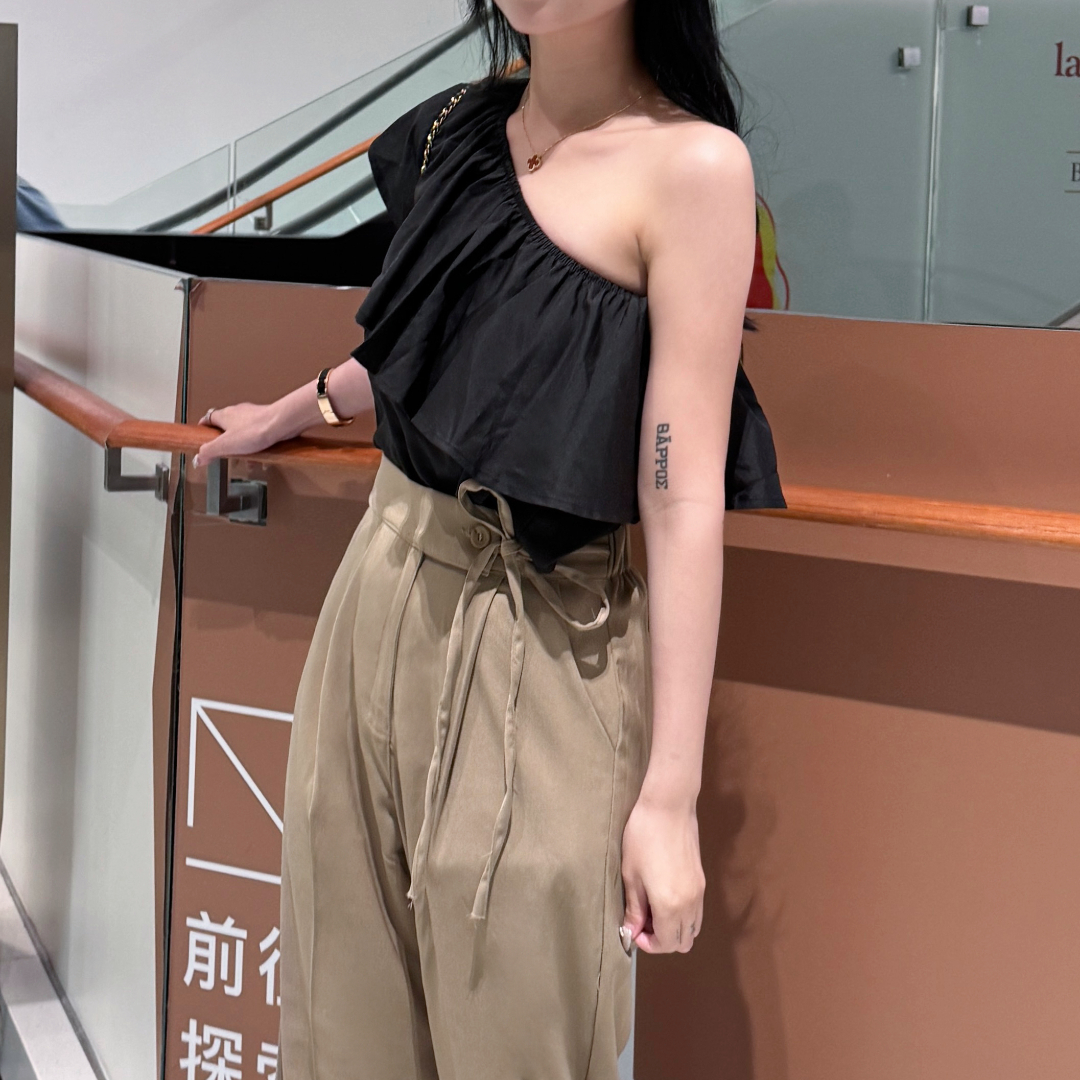 超超超推嘅一款西裝長褲!一著上去令店主嘩然了,首先係質地超級好,滑身修身,直腳版型好睇,加埋呢個小小綁帶位每呢條西褲仔畫龍點睛~😎(店主就係鍾意呢個綁帶位)後面係橡筋腰,唔驚唔啱著喇! 褲長99cm 腰圍62-80cm 橡筋腰 臀圍88cm 褲腳圍46cm 參考身高160cm