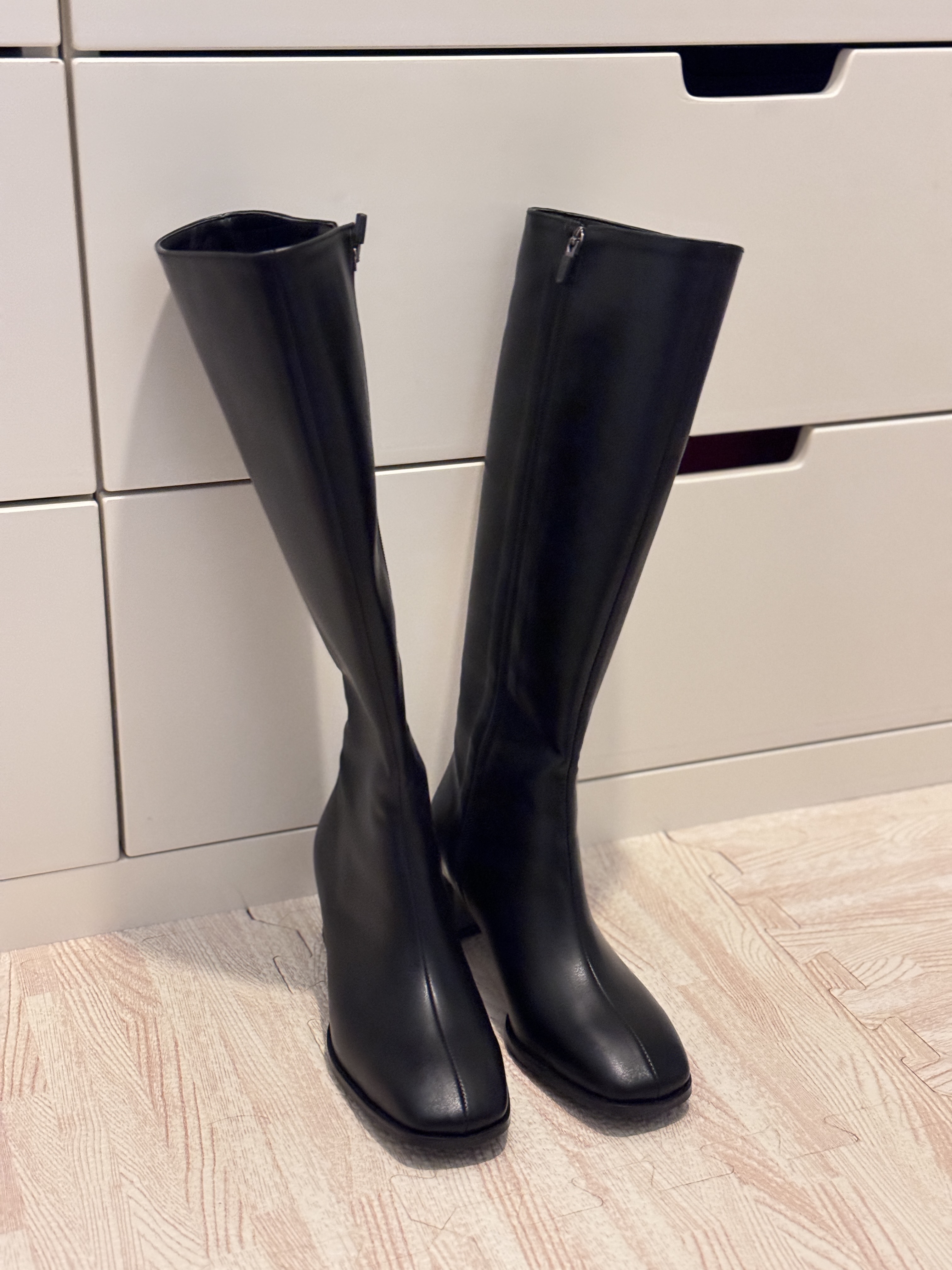 ## S08 韓國大熱平頭5CM長Boot S08 韓國大熱平頭5CM長Boot 我諗係每個女仔都必須要入手嘅一對!!超級百搭嘅經典款😉而且有少少鞋爭顯得更加修長~買正碼就可以!店主著開37.5 就著38🙆🏻♀️著37會有啲緊~呢個高度唔使驚太辛苦!絕對係拉長身形必備之選💟 * **尺碼**: 225-250
